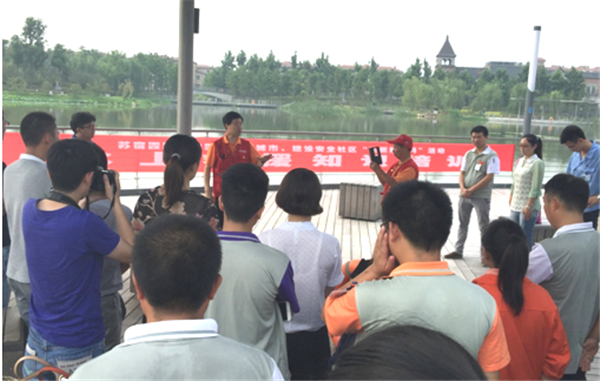 培训中,宿迁黄河水上乐园志愿救援队王爱东队长结合亲身经历,深入浅出地为园区60余名企业安全员和居民子女上了一堂生动的“水上救援知识”课,并号召大家树立“善为、巧为、智为”的志愿服务理念,踊跃加入志愿服务行列,受到了大家的一致好评。