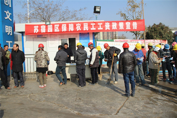 12月2日上午,为提高农民工维权意识,园区劳动保障和社会事业局、规划建设局到碧桂园高层区项目施工现场开展保障农民工工资政策宣传活动。活动期间,共发放《教你维权,农民工工资案例审编》《信访手册》《劳动者维权实用手册》等相关资料200余份,现场接待群众咨询200多人次。
